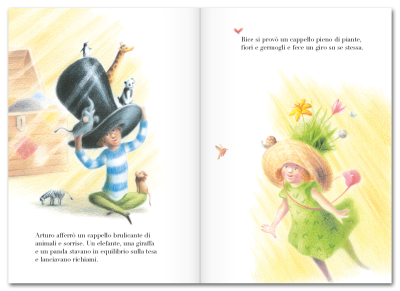 All’inizio, i bambini videro solo un mucchio di cappelli: semplici, di paglia, tutti uguali. Poi, si accorsero che erano uno diverso dall’altro, strani, colorati...