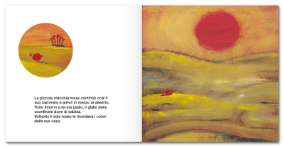 C’era una volta una piccola macchia rossa che viveva nel Paese delle Macchie. La piccola macchia rossa era molto curiosa, così un giorno salutò i suoi amici e partì per un lungo viaggio alla scoperta del mondo.
