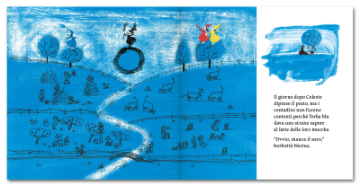 Un giorno, vedendo il proprio riflesso nell’acqua, alle fate viene un’idea: “E se dipingessimo il paese con i nostri tre colori?”