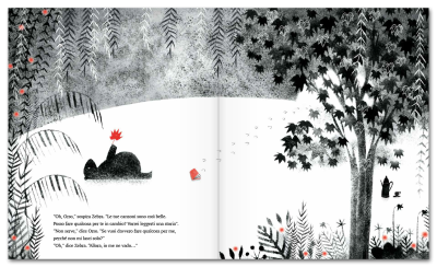 «Nel bosco sono tutti in silenzio, tranne il pianoforte. Nemmeno gli uccellini cantano, perché la musica di Orso è bellissima. All’improvviso, uno sbaaadiglio interrompe la musica.