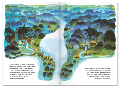 Sulla sponda di un fiume abitano due famiglie di contadini, una sulla riva sinistra e l’altra sulla riva destra. Fra le famiglie non scorre buon sangue e spesso litigano fra di loro. Ma un giorno, quando le acque nel fiume si sono abbassate, i bambini non resistono alla tentazione e attraversano il fiume...