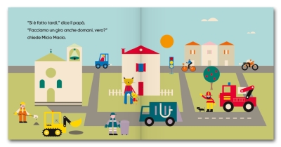 Micio Macio è un gattino curioso che se ne va a zonzo per la città.