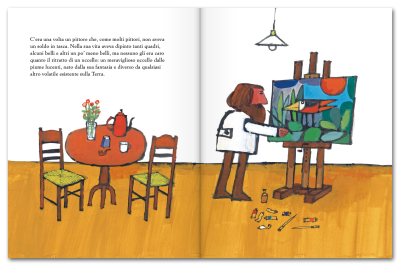 Un giorno, un ricco signore gli offrì una grande somma di denaro per il quadro e se lo portò via, senza badare alla tristezza del pittore. Non passò molto tempo, però, che il ricco signore tornò con il bel ritratto vuoto: l’uccellino, che non era affatto felice nel nuovo sontuoso palazzo, era volato via...