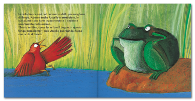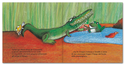 La rabbia e il cattivo umore sono contagiosi. Lo sa bene Scimmia, che oggi si è svegliata male e se la prende con Uccello, che a sua volta offende Rospo, che per reazione infastidisce Coccodrillo, che colpisce con la coda Tartaruga.
