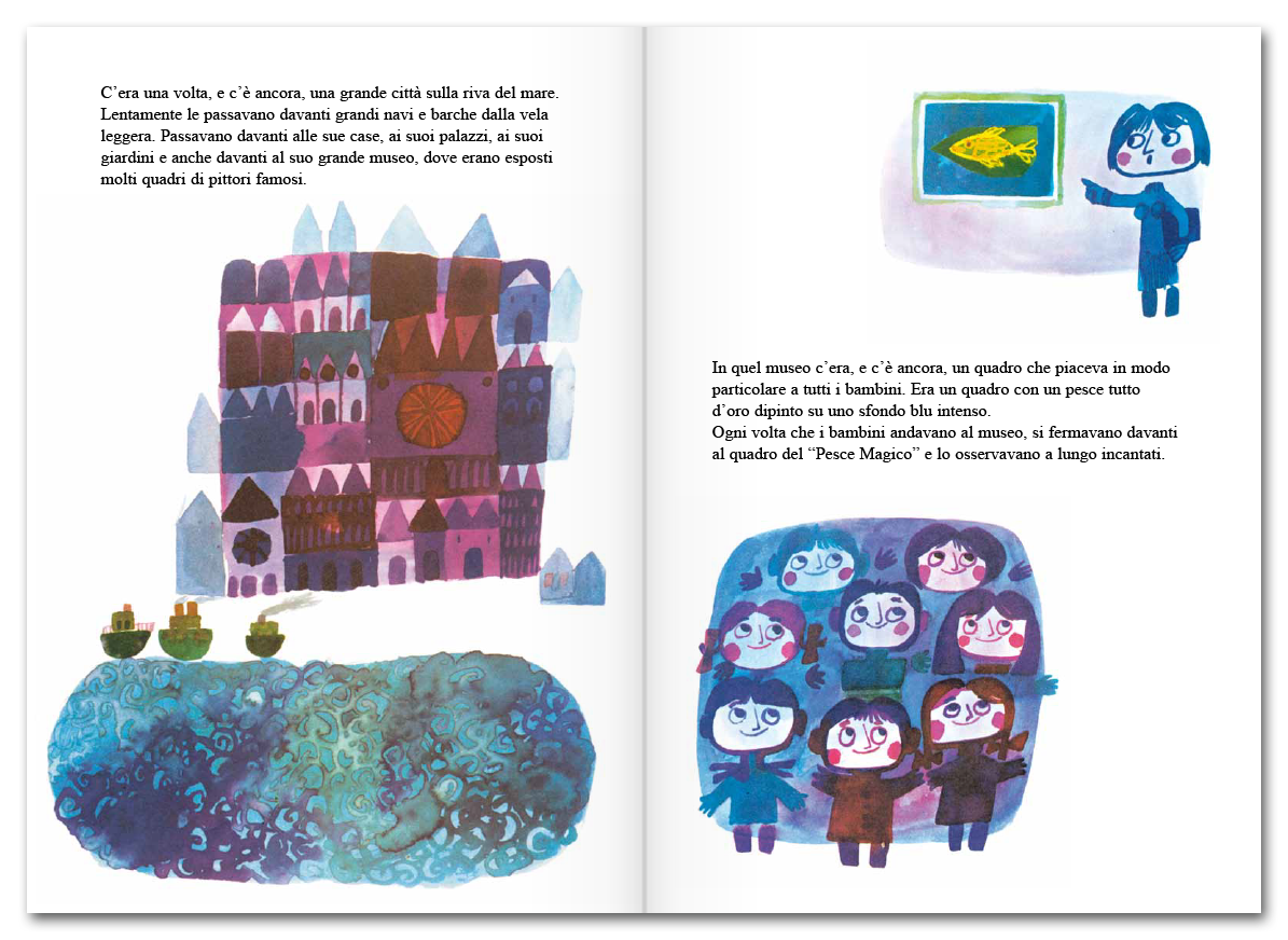 Il Pesce Magico è il libro che nel 1964 iniziò la missione pedagogica di Štěpán Zavřel, da lui portata avanti tutta la vita: elevare l’albo illustrato a luogo della massima libertà espressiva e, allo stesso tempo, a promotore di una profonda educazione estetica e spirituale.