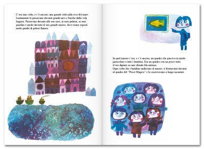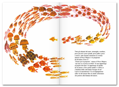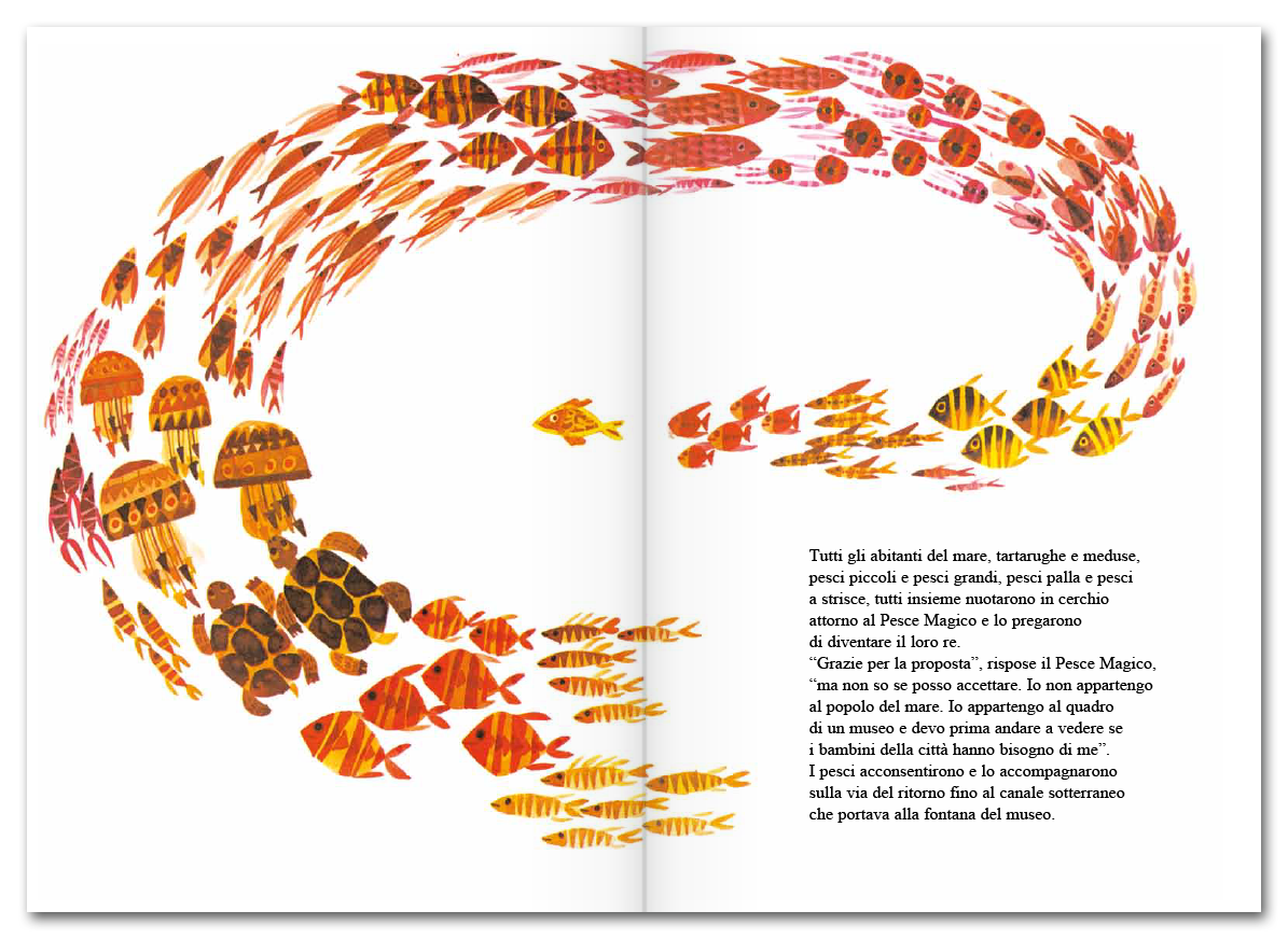 È quello che si chiedono i pesci rossi della fontana del museo che, incuriositi, invitano il loro simile a giocare con loro. Inizia così l’avventura straordinaria del Pesce Magico, che abbandona il quadro per scoprire le meraviglie del mare profondo.