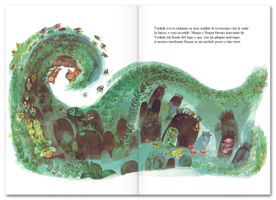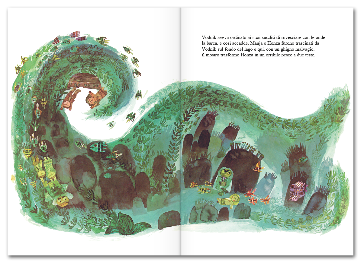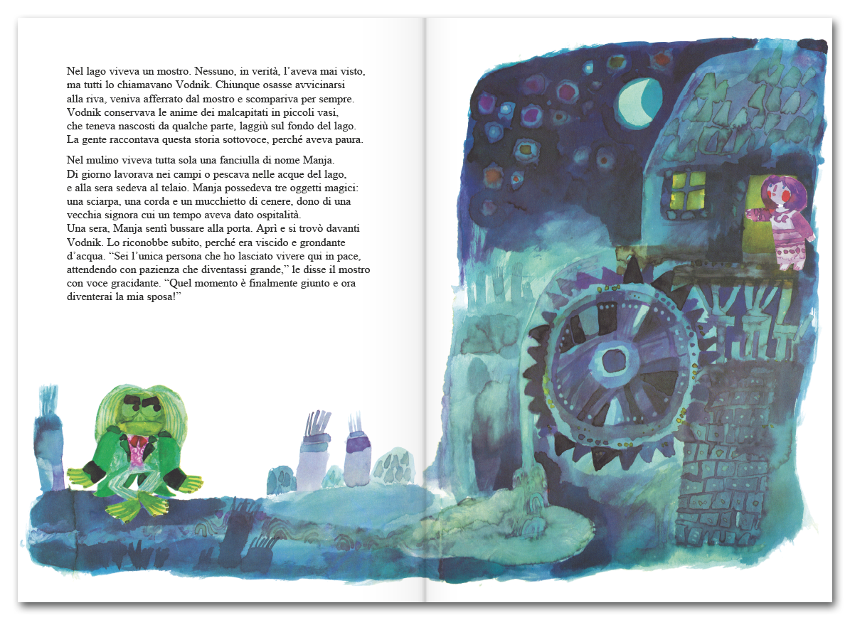 “C’era una volta una foresta fitta e buia. Nel cuore di questa foresta si trovava un grande lago dalle acque profonde, sulle cui rive sorgeva un mulino. Nel lago viveva un mostro. Nessuno, in verità, l’aveva mai visto, ma tutti lo chiamavano Vodnik...”