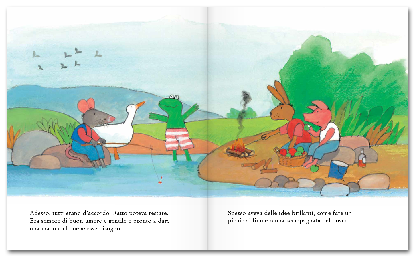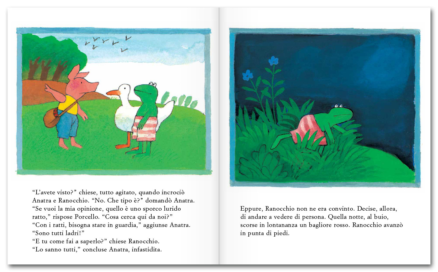 «In ogni storia, quello che vive Ranocchio è qualcosa nella quale di solito i bambini possono ritrovarsi perfettamente: può essere un’amicizia, una difficoltà, una nuova scoperta, un’avventura, a volte anche un dispiacere. Ci sono emozioni forti, ma raccontate con la totale verità di quello che è il modo di stare nelle emozioni dell’infanzia».