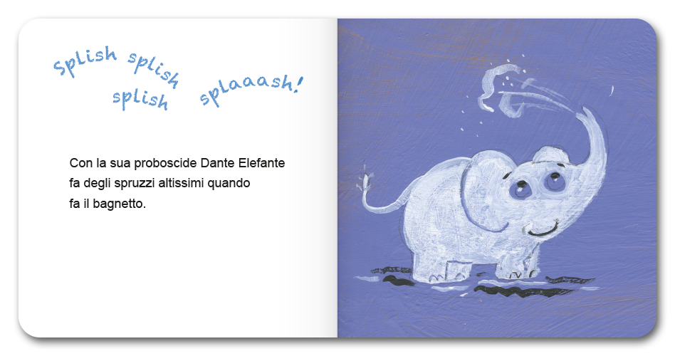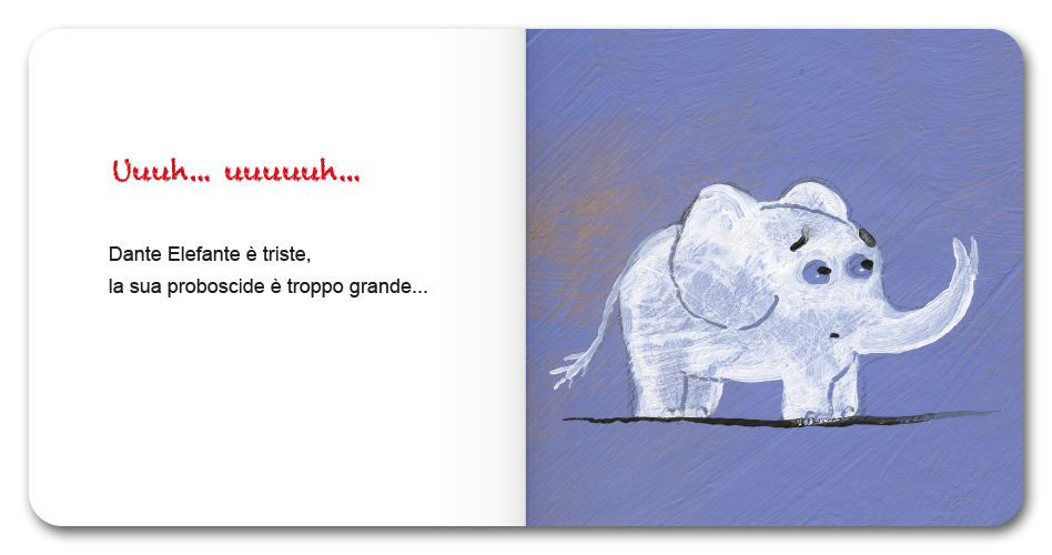 Dante Elefante è preoccupato, trova che la sua proboscide sia troppo grande. Ma un poco alla volta scopre quanto gli è utile: per mangiare, annusare i profumi, fare spruzzi...
