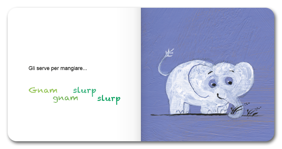 Una storia che può essere letta a due voci, fresca e divertente, capace di stuzzicare la fantasia e stimolare nel bambino il desiderio di comunicare con i gesti e con la voce, diventando attore del racconto.