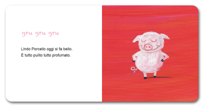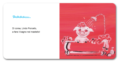 Lindo Porcello ha un codino ricciolino e un sorriso birichino È bello tutto rosa con gli occhi da birbante. Si sporca in ogni istante con fango e cioccolata sabbia e marmellata. E a sera? C’è la mamma col bagnetto. E poi? Daccapo si comincia. Che diletto!