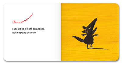 Certo! Quando Lupo Baldo sente l’ululato di Mamma Lupa, si gonfia di coraggio, e quando la mamma gli fa le coccole non ha paura di niente, neanche di quei terribili animali.