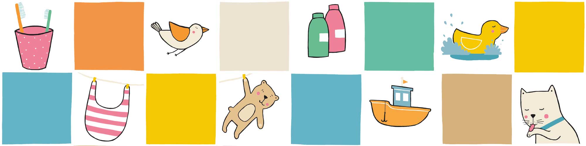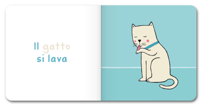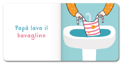 Nelle pagine iniziali e finali sono riportate le immagini riquadrate degli oggetti presenti nel libro affinché il bambino possa riconoscere, additare e nominare le piccole cose che accompagnano la sua giornata.